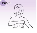 знову огляньте по черзі молочні залози, звертаючи увагу на зміщення їх догори, в сторони або донизу; зміна форми з утворенням підвищення, западання, втягування шкіри або соска; поява крапель рідини з соска при цих рухах.