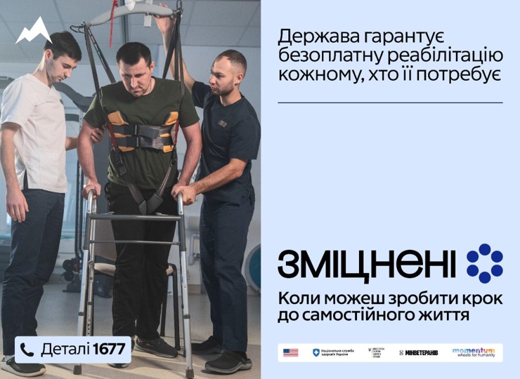 В Україні діє комунікаційна кампанія «Зміцнені», яка інформує про можливості безоплатної реабілітації в межах Програми медичних гарантій.