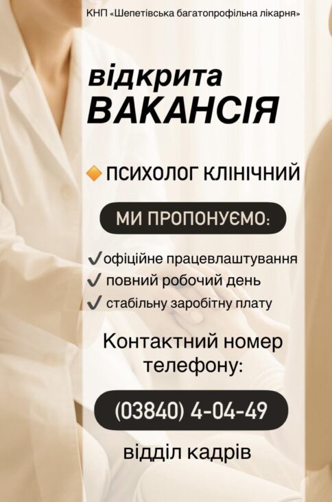🏥КНП «Шепетівська багатопрофільна лікарня» запрошує на роботу, клінічного психолога до Центру ментального здоровʼя!