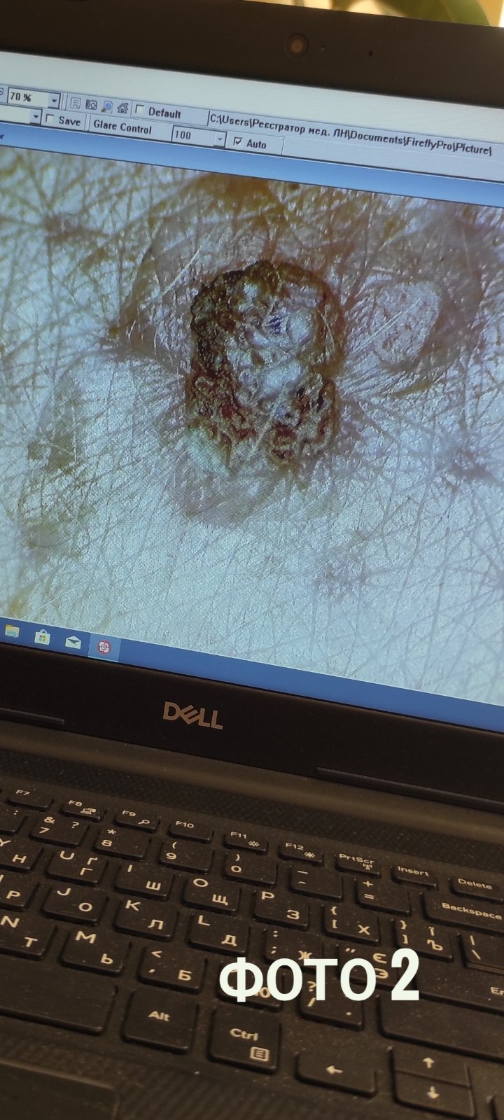 фото1 – звичайний огляд, фото 2 – огляд дерматоскопа.