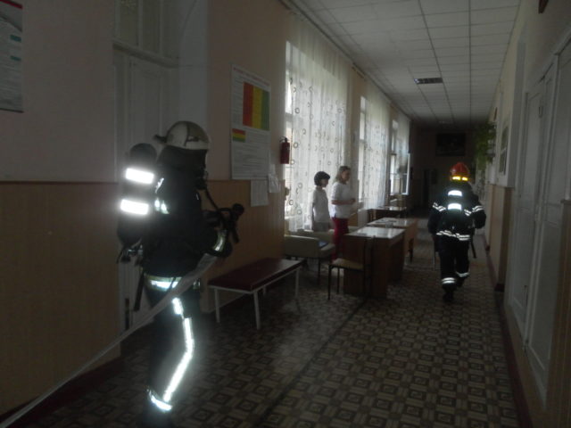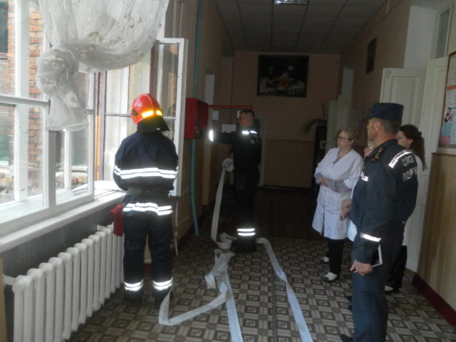 – тренування по умовному пожежогасінню в приміщеннях на базі неврологічного відділення ЦРЛ з використанням первинних засобів пожежогасіння та технічних засобів пожежних кран-комплектів з пожежними рукавами